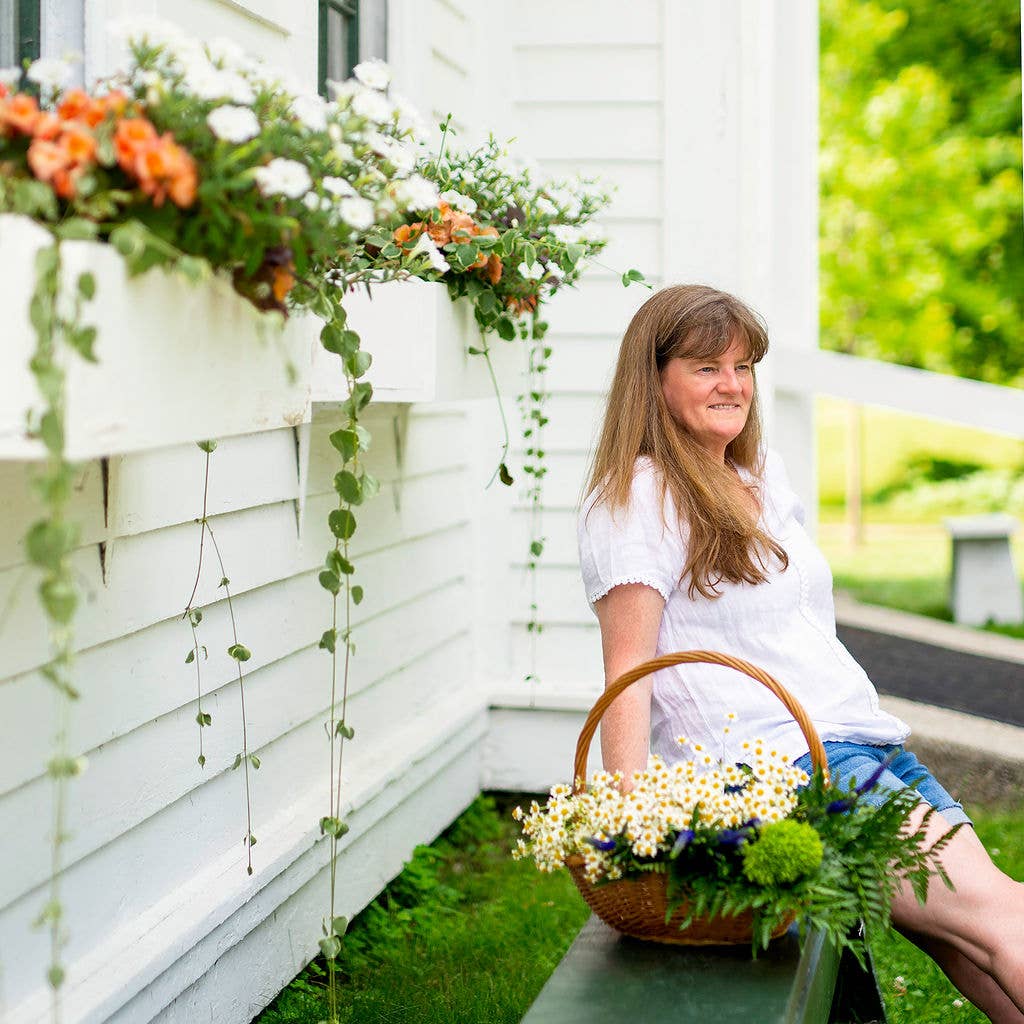 A whimsical figure designed entirely from pressed botanicals that I grew in my garden! Featuring the blossoms of Fleabane, Daisy, mini Roses, Twinspur and more, it's a sweet all-occasion card.